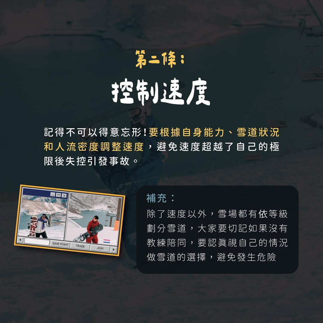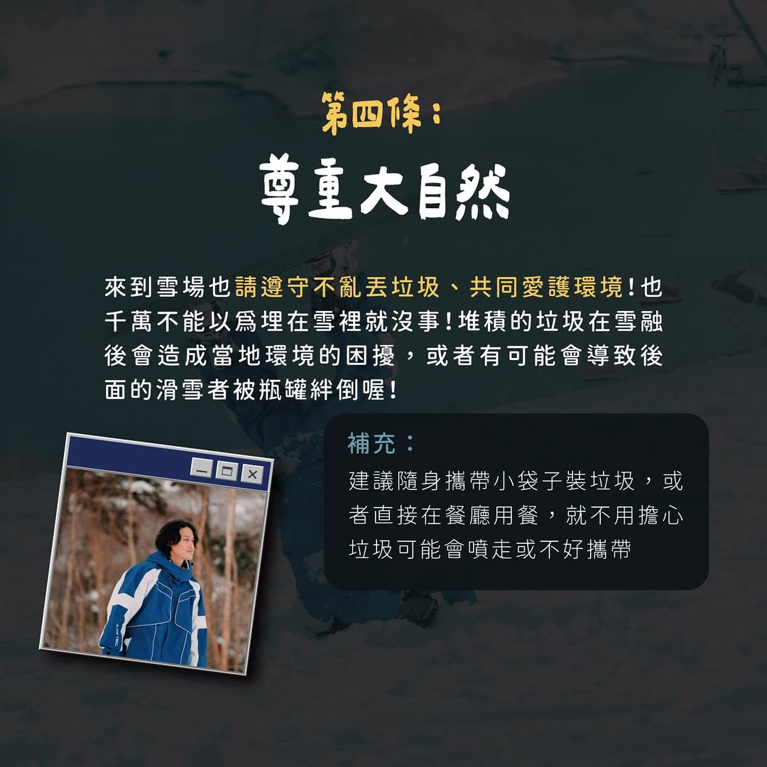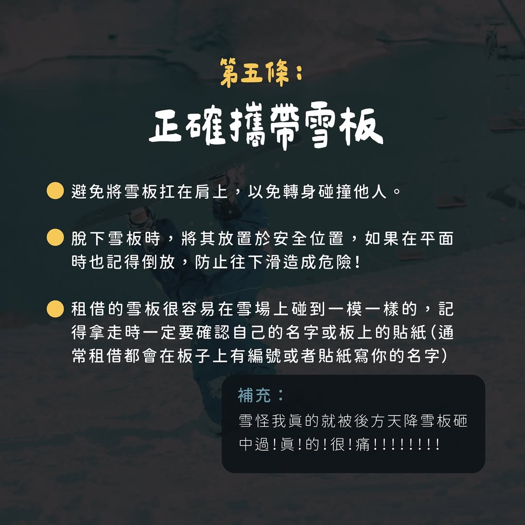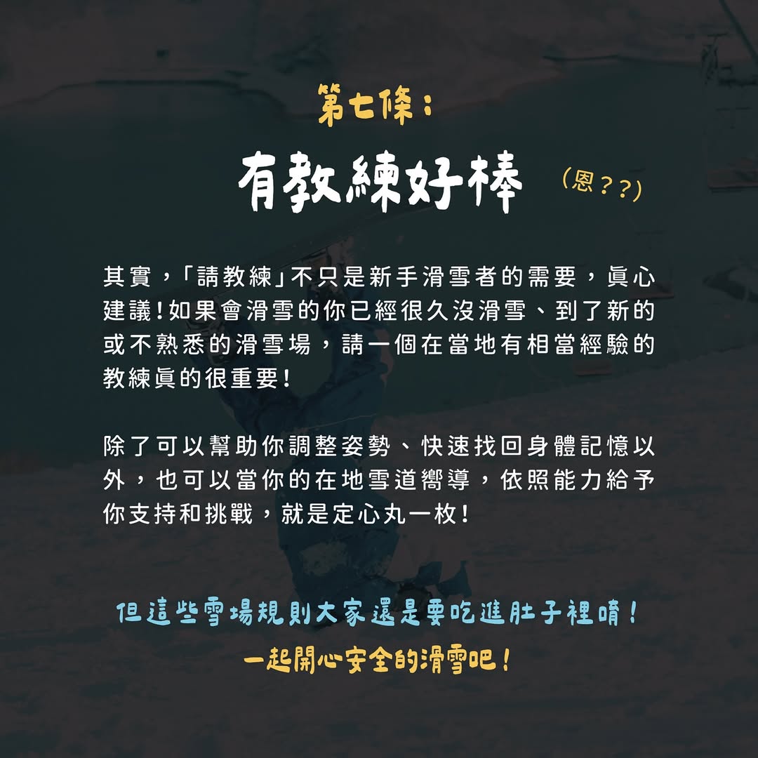 其實!會說是隱形規則就是因為它「並非明文規定」,而是透過大家共同遵守或維持以享有「安全」的一種默契,大家來滑雪玩得開心,也要安全第一!所以今天雪怪來分享幾個覺得很重要的小眉角,希望大家都有認真看完喔😝✨